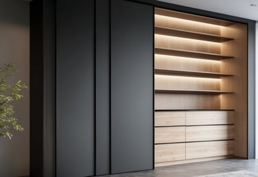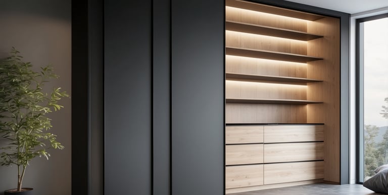 Tidløs garderobeløsning med skyvedører og hengslede dører